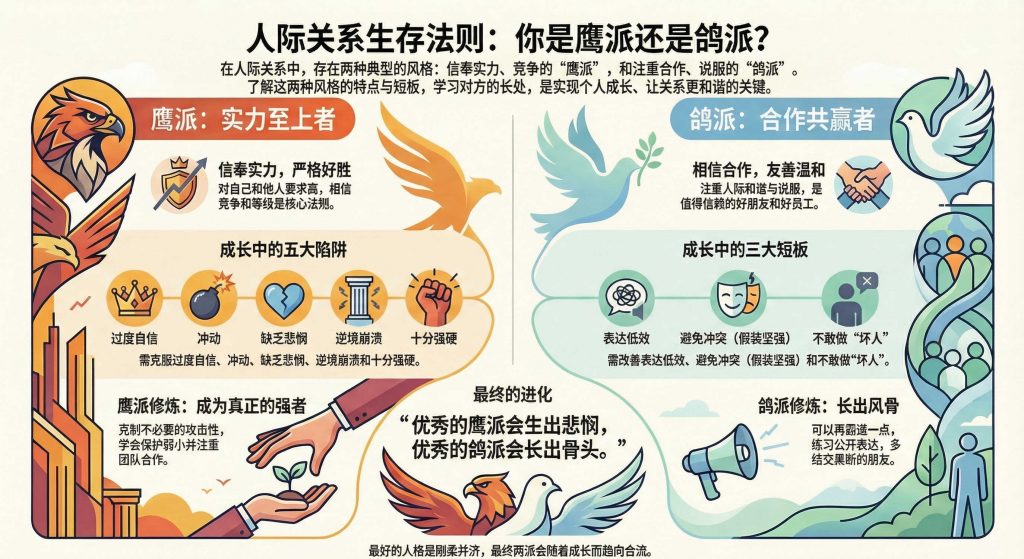 - 鸽派不要在感情上当好人,过分追求“我是个好人”会陷入“人内损耗”。